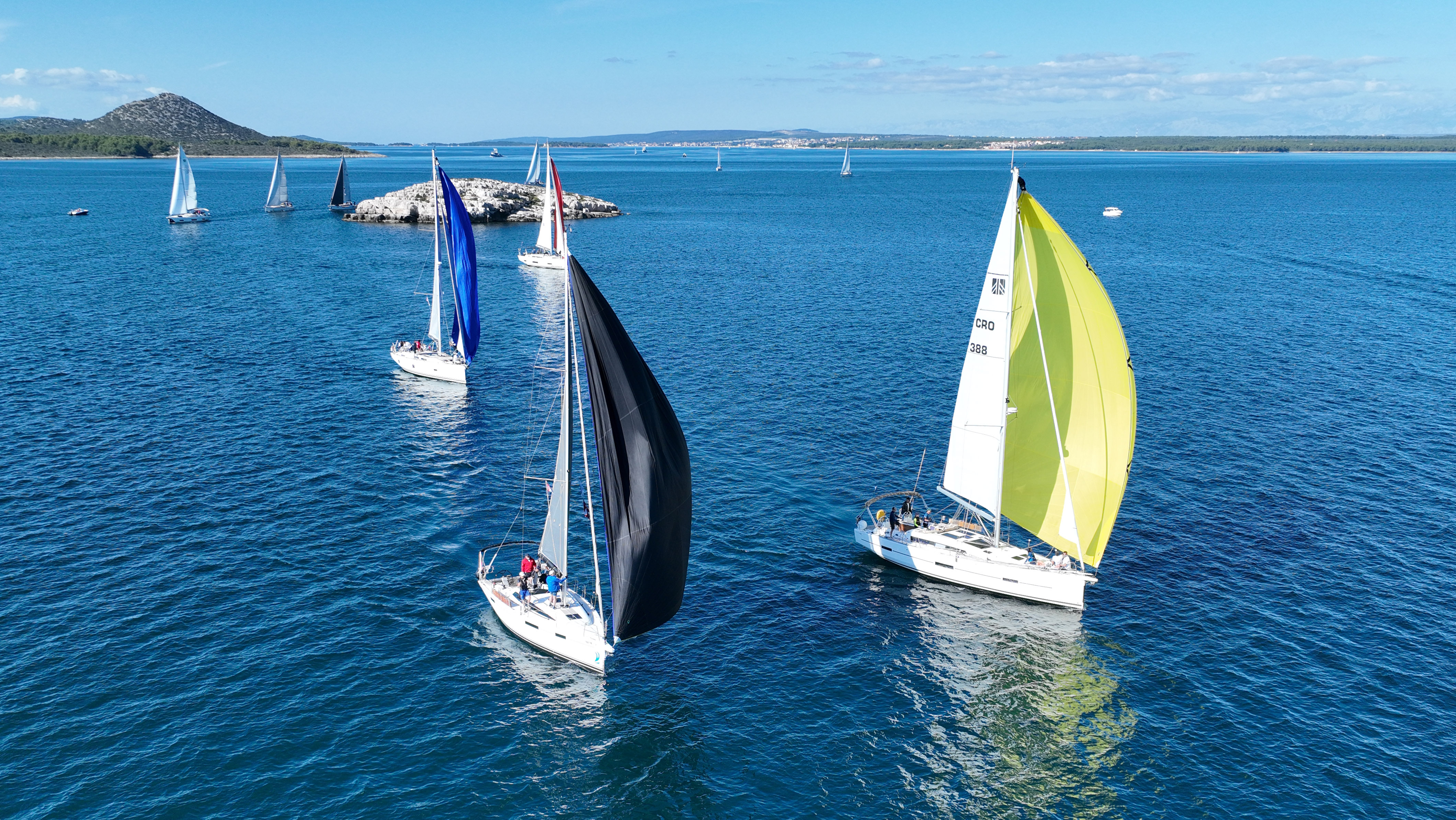 Gleich nach dem Start um 14:05 Uhr entschieden wir uns nach der Insel Gnalić (alias „Blondlić“) für die Route backbord an Vrgade vorbei – eine mutige Wahl, aber genau die richtige! Während die meisten Boote die andere Strecke nahmen, konnten wir mit klugem Kurs zum Wind früh Boden gutmachen.